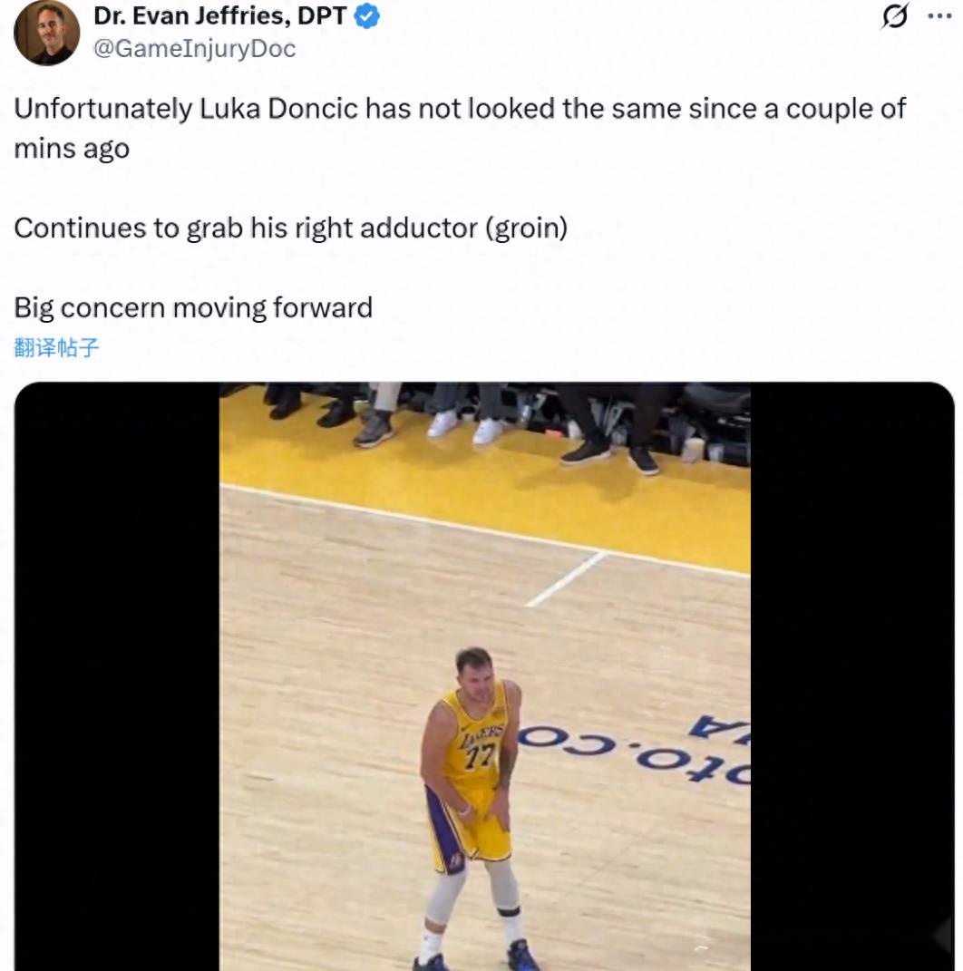 甚至在来到最后时刻,东契奇一度出现手部捂住自己的胯部的情况,这样的举动非常明显,很明显就是腹股沟出现了一些不适。而根据运动医学专家Evan Jeffries透露的消息:一直在揉右内收肌,疑似右腹股沟(内收肌)受伤,未来他的情况让人感到担忧。当然他加时赛还能打,这就证明他可以继续比赛,可能只是出现不适罢了,球迷也不用过度担心。