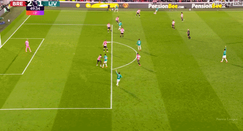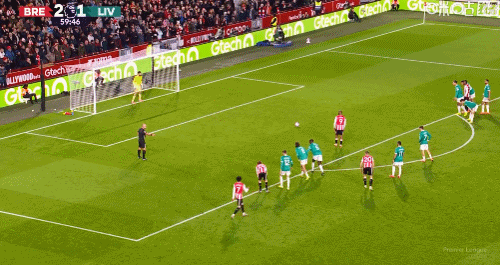 第58分钟,瓦塔拉禁区左侧带球内切,被范戴克在大禁区线内踢倒,随后VAR介入,主裁判判给布伦特福德点球,伊戈尔-蒂亚戈主罚命中,3-1!