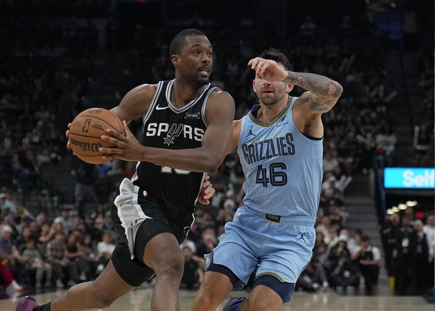 马刺主场迎战灰熊,马刺缺少了文班、卡斯尔、哈珀,灰熊缺少了莫兰特、皮彭、克拉克,前三节比赛打得很胶着,三节战罢灰熊领先1分,第四节马刺打出了强势表现,单节赢了11分,最终马刺以10分优势拿下比赛。福克斯20中10得到26分3助2断,巴恩斯14中9(三分8中4)得到23分5板3助,灰熊方面考沃德15中7(三分7中5)得到19分11板,杰克逊20中8得到18分6板3助。