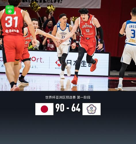 北京时间11月28日世界杯亚洲区预选赛 第一阶段,日本男篮对阵中国台北男篮。半场日本男篮45-22中国台北男篮,最终日本男篮88-64中国台北男篮。
