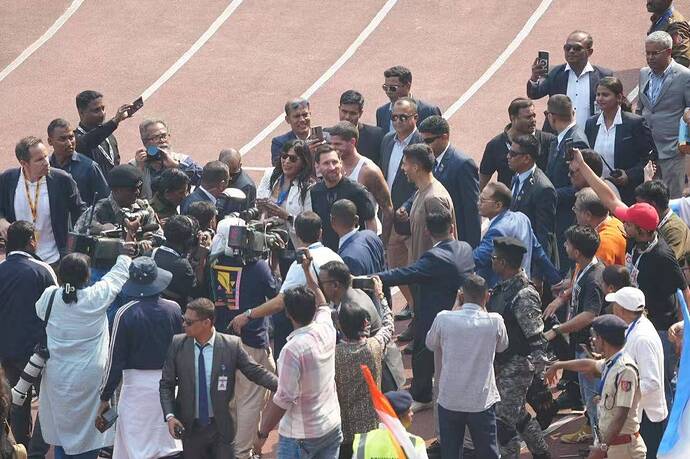 当地时间本周六,梅西、苏亚雷斯和德保罗乘坐私人飞机降落在加尔各答,准备开启为期三天的“印度行”。随后,梅西三人前往加尔各答能容纳85000人的盐湖体育场,绕场与球迷见面,但由于赛事组织方的管理混乱,大批政府官员与随行人员将梅西团团围住,索要合影,导致花费高价买票的看台上的球迷们却无法看到梅西的身影,进而引发了球迷们的抗议。