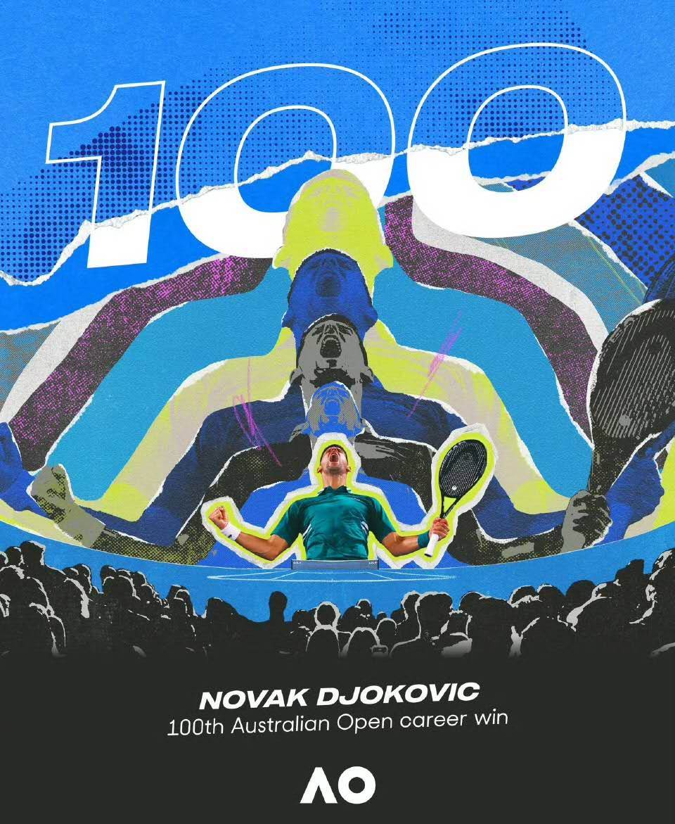 2026年澳网男单首轮,塞尔维亚天王德约科维奇兵不血刃以6-3 6-2 6-2的比分直落三盘轻松击败西班牙选手马丁内斯,强势晋级第二轮,同时也收获了自己在澳大利亚公开赛的第100场胜利。
