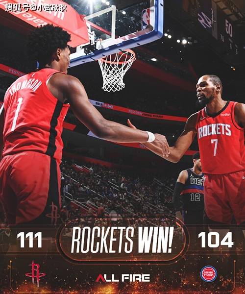 火箭背靠背111-104客胜活塞,杜兰特32+7,申京19+5,杜伦18分