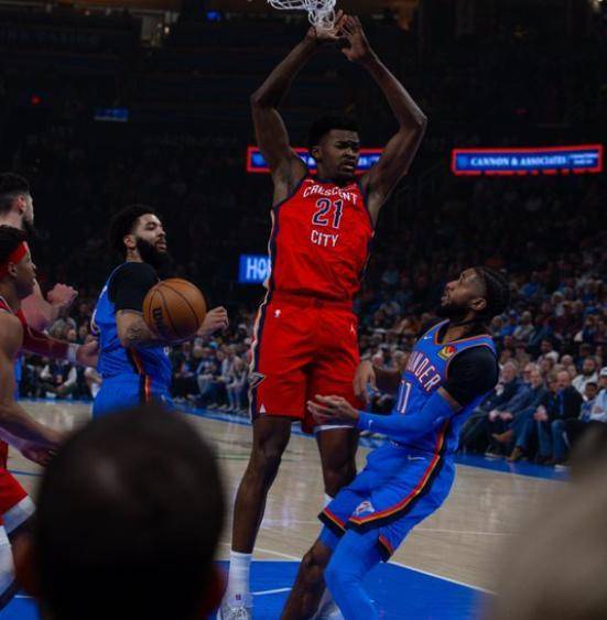 正处于两连败的雷霆,这一个比赛日,坐镇主场迎来了和新奥尔良鹈鹕的西部积分榜首尾大战,本场比赛亚历山大的进攻效率并不高,好在霍姆格伦和以赛亚乔手感滚烫,帮助雷霆在主场以104-95击败了鹈鹕。