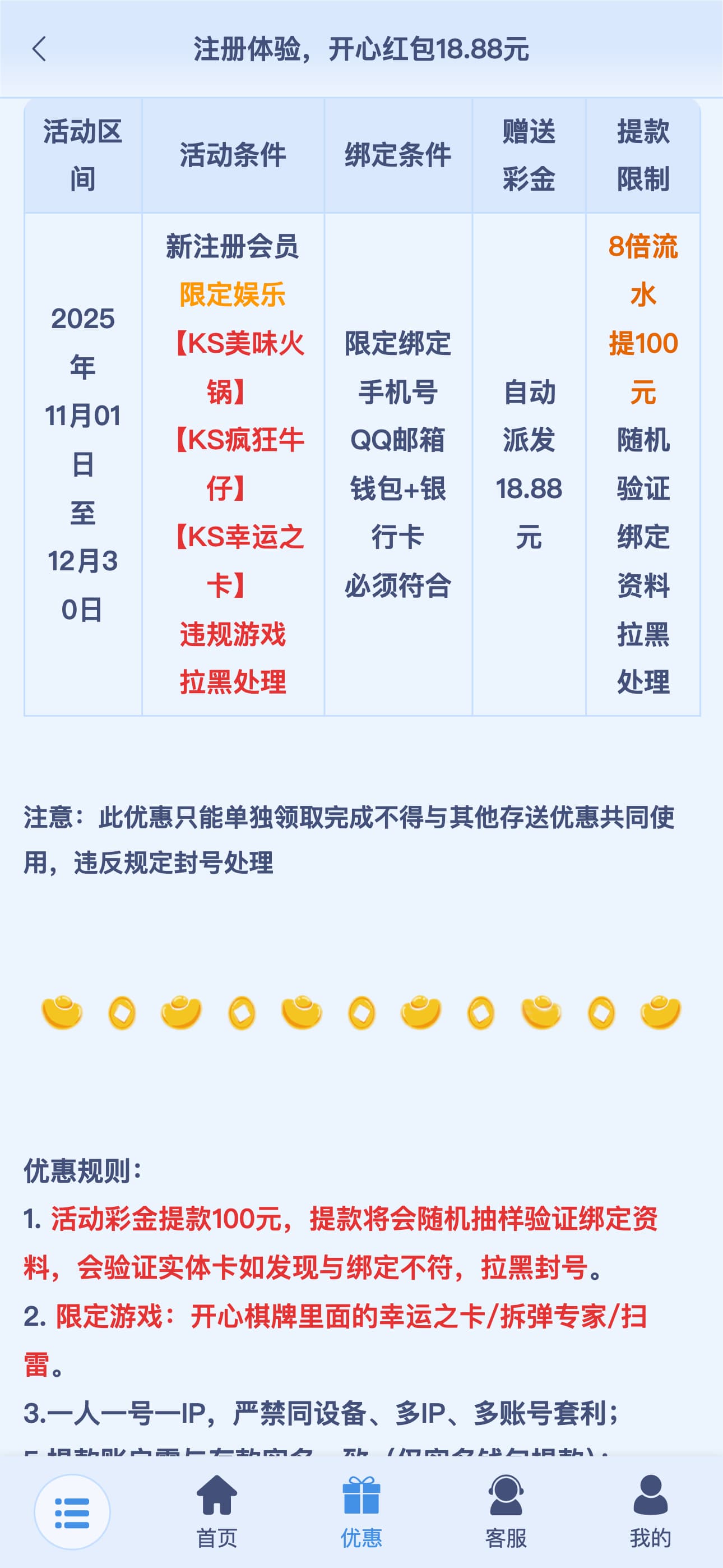到账情况:严禁充值 领取方式:注册完善信息 安全系数:中 平台资历:自行调查 会员评分:★★☆☆☆ 官方网址:https://99586547s.xyz/# 流水限制:自行查看