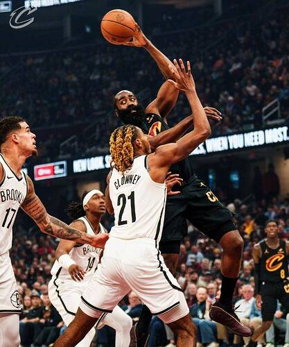 重新回到赛场之后,骑士继续在场上吊打篮网,分差也是越拉越大,比赛也早早就进入到了垃圾时间,哈登这一场打得时间也不长,早早打卡下班,全场靠着8中6的效率,贡献了16分、5个篮板、9次助攻和3次抢断。